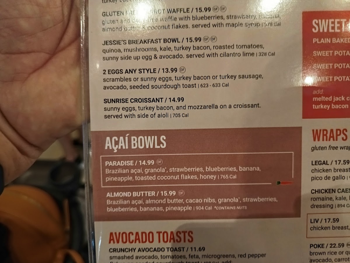 Brazilian açaí, almond butter, cacao nibs, granola*, strawberries, blueberries, bananas, pineapple. Dairy Free (DF) *CONTAINS NUTS