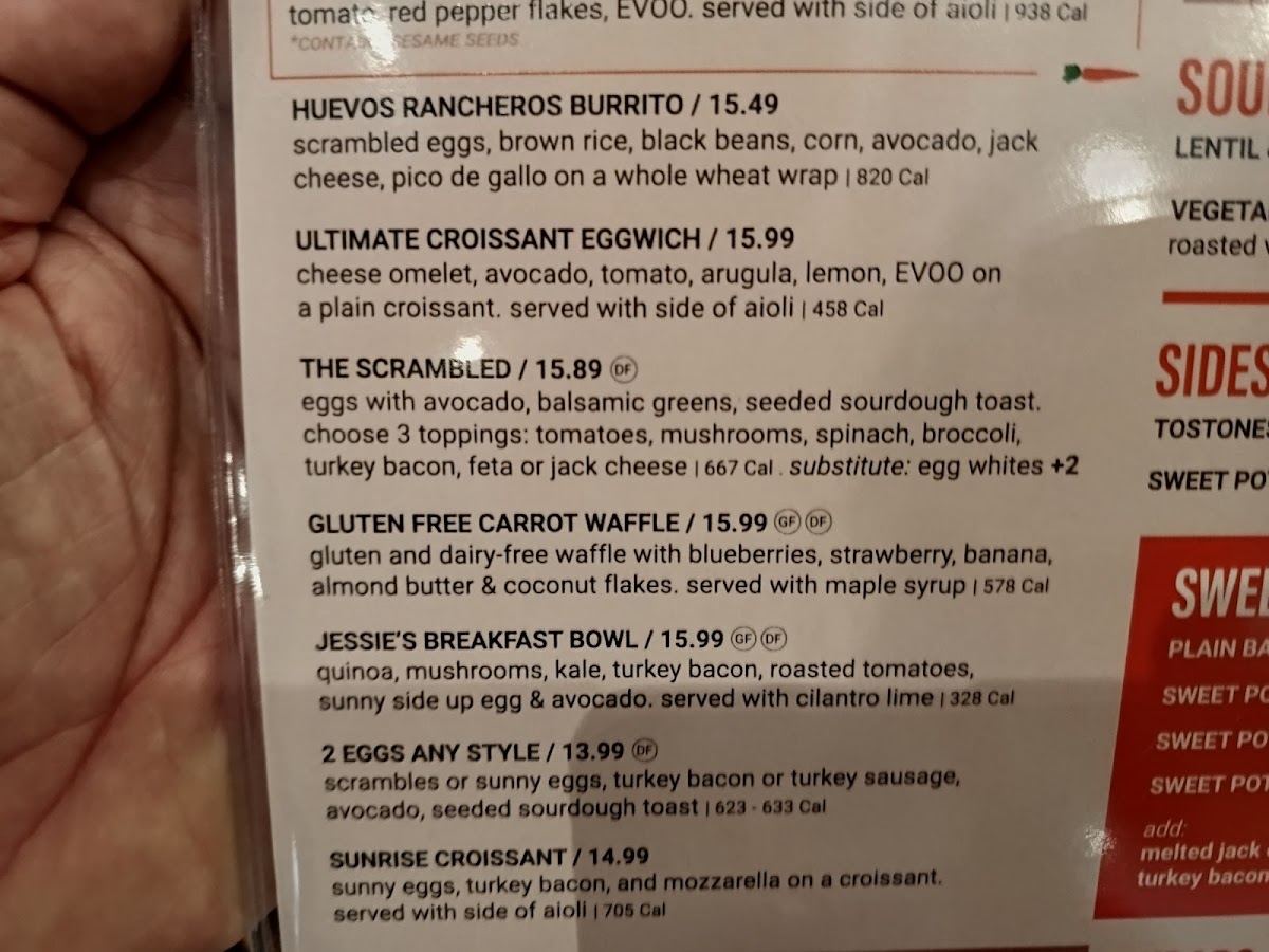 scrambles or sunny eggs, turkey bacon or turkey sausage, avocado, multigrain sourdough toast. Dairy Free (DF)