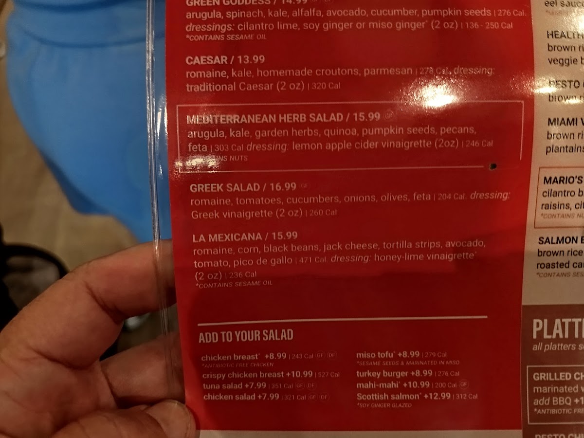 Arugula, kale, garden herbs, quinoa, pumpkin seeds, pecans, feta. dressing: lemon apple cider vinaigrette Gluten Free (GF)